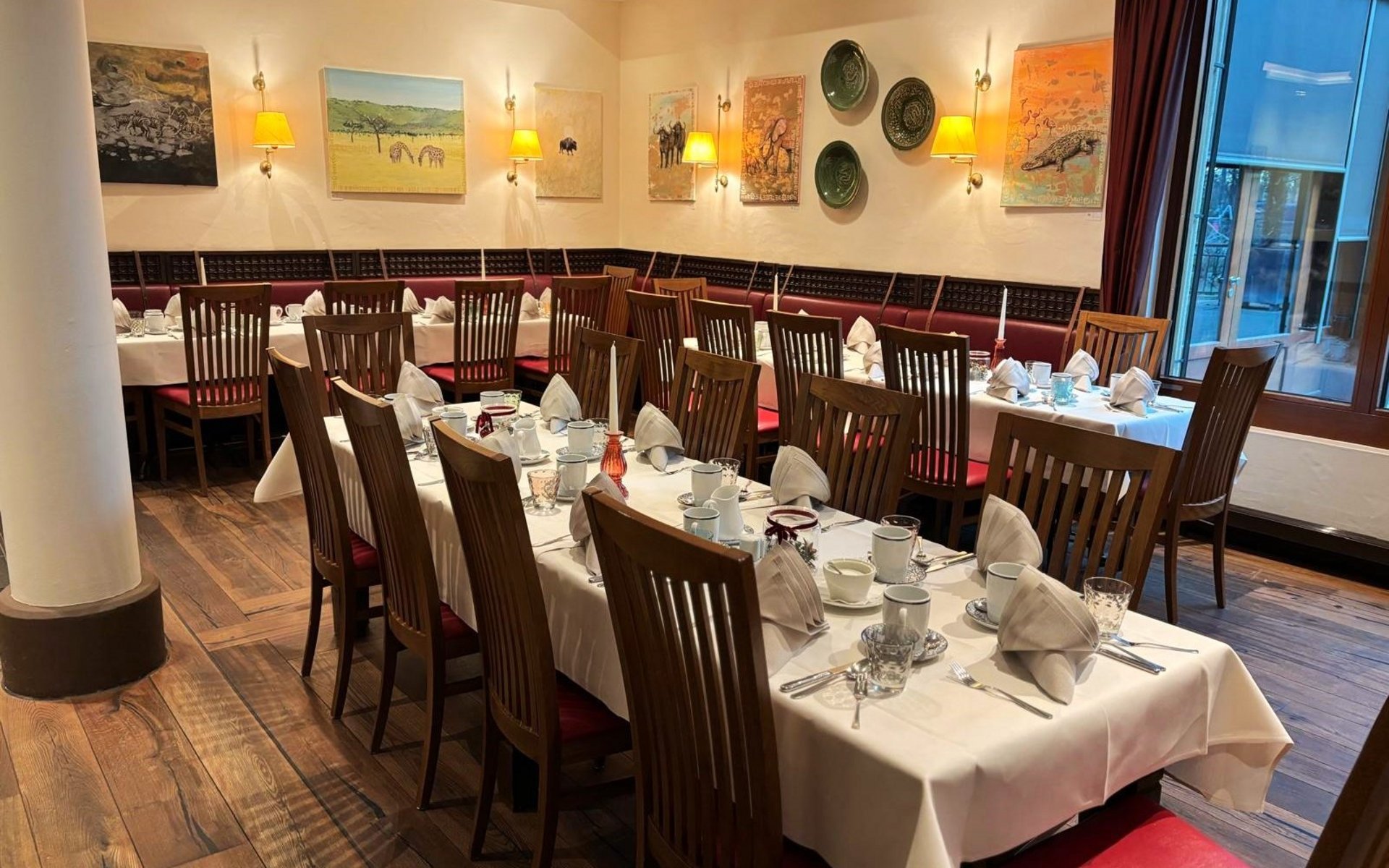 Je nach Personenanzahl richten wir die Bestuhlung entweder an runden Tischen oder in Tafel-Form ein, um den Ablauf und die Atmosphäre optimal zu gestalten. Bitte beachten Sie, dass eine Raummiete anfällt.