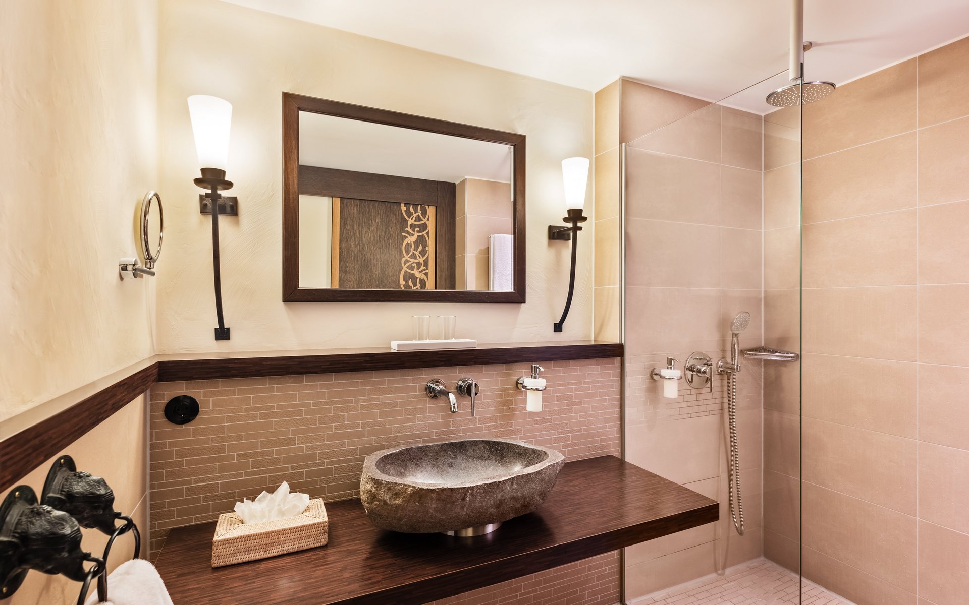Mit individuellem Design und vielen exotischen Details im asiatischen oder afrikanischen Stil, schaffen unsere großzügigen Deluxe Doppelzimmer eine echte Wohlfühlatmosphäre. Unser hochwertiges Bettenkonzept lädt zum Ausschlafen und Entspannen ein